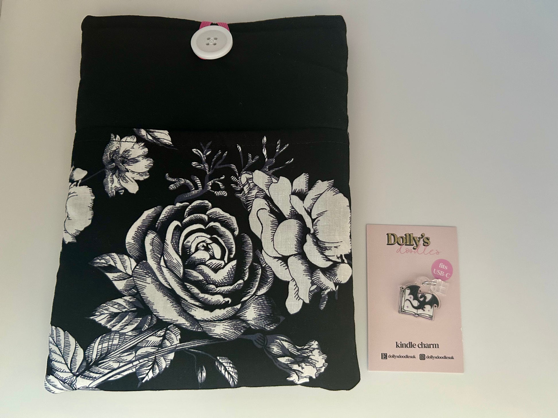 Black Floral Kindle Sleeve and Dragon Kindle Charm